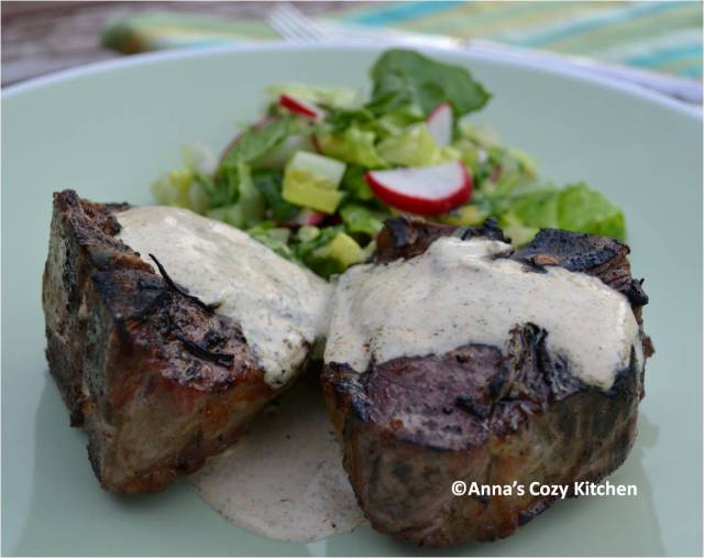 Prepare sauce while the chops are sitting in the herb paste. Store in refrigerator until ready to serve.